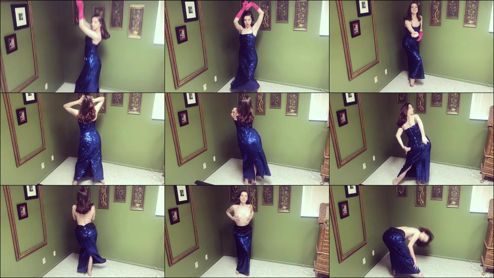 (Burlesque, striptease, blue dress, shiny clothes, gloves, pink gloves, mermaid, retro)