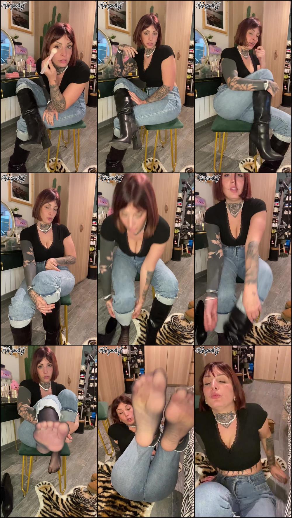 Ti piace la combo JEANS e STIVALI?? Certo che ti piace! E ti piace soprattutto il fatto che ai piedi indosso dei calzini di nylon molto molto velati e soprattutto odorosi!!Non vedi l'ora che sfili gli stivali per farti vedere i miei piedi velati vero?E magari segarti mentre te li mostro. Ma che maiale che seiiiiiiiiiiiiiiiiiiii!!