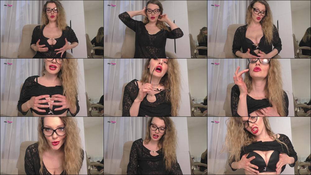 You missed your CEI so bad that everytime you see me now you wana taste that cum. Your addiction to swallow cum for me is so strong that only looking at me makes you shiver and you want to touch your dick and taste it. I know how much you like my sexy naughty tease and encouragement. I know exactly what you want to hear and to see. Big tits, pretty face, sexy eyeglasses all of it makes you so weak and raise your cock instantly. Lots of cleavage, squeezing those tits, lots of eye contact and sensual guidance to your release, to your hand full of cum. Its never felt bette feeling so weak and obedient infront of your Goddess.