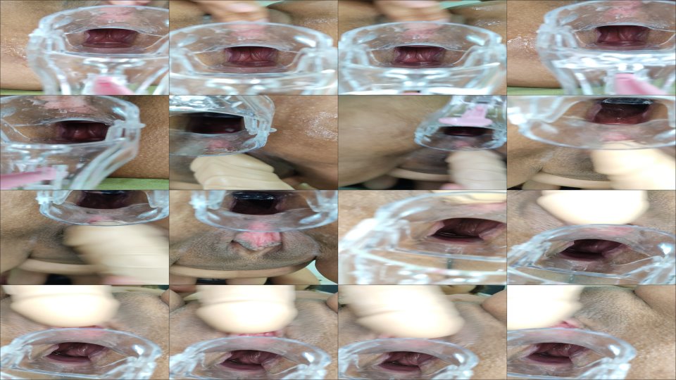 Latina brunette gets a speculum in her pussy while rubbing with a dildo
