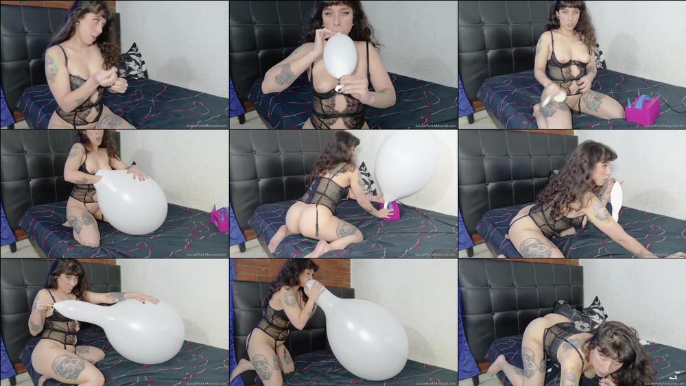with my sexy black clear bodysuit, pantiesless, i am going to stretch lot a white 20 inch balloon, blow its neck without pop it, blow the whole balloon with my air pump twice, then i'll finish it with mouth and after that i am going to put a finger inside my asshole and smell it for you.