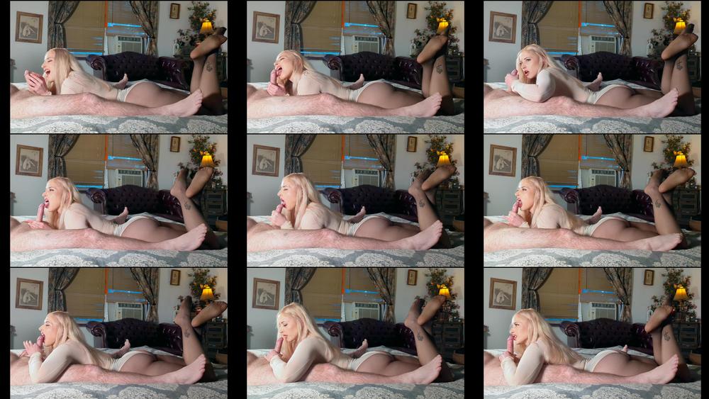 You start out in the video lightly tickling his cock and balls with your finger tips making spidery tickle motions all over it and paying particular attention to the frenulum and balls. You then move on to licking his cock. Flicking the frenulum with your tongue to tickle and tease him. The last part of the clip would be you really focusing on licking the tip whilst stroking the base of his cock to orgasm with lots of verbal teasing.