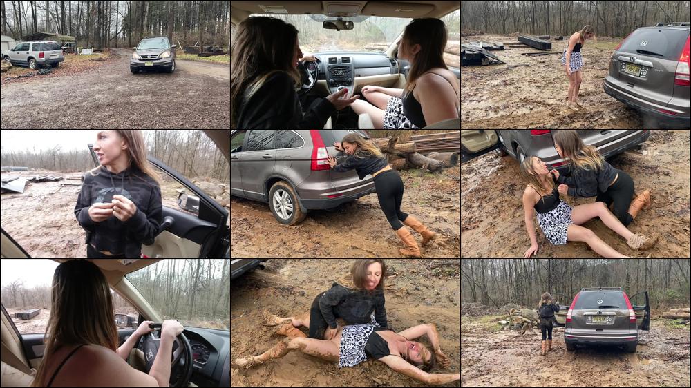 Lora Cross and Sinthia are lovers that are about to head to dinner. They leave a little early and Lora decides to surprise Sinthia with a make out session over lookout point. Only problem is that it just rained and they underestimated how much mud there would be. The girls get stuck…and eventually make the best of it as they get more and more turned on…they eventually end up making out, scissoring and rolling in the mud. This was way better than a dinner date!